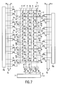 - Each of the row conductors 5 is coupled to voltage supply lines V+ and V- via respective switching transistors 71 and 72.