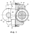- FIGS. 1-6 there is shown a D.C. embodiment of the magnetic confinement apparatus and method of the present invention associated with a pair of rollers of a continuous strip caster. It should be understood that while this specification will describe molten metal confinement at one end of a pair of rollers, there is confinement of molten metal between a pair of counter-rotating rollers at both ends of the pair of rollers.
