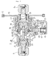 - a spur gear 48 fixed to the output shaft 131 of the assistive motor 13 is in engagement with a spur gear 50 mounted on a second overrunning clutch 49 coupled with the first intermediate shaft 44, a spur gear 51 fixed to the first intermediate shaft 44 is in engagement with a spur gear 52 fixed to the second intermediate shaft 47, and a bevel gear 53 fixed to the second intermediate shaft 47 is in engagement with the bevel gear 34 fixed to the sleeve 28.