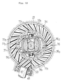 - a gear housing containing the driving mechanism D comprises a left housing member 21, i.e., a main housing member, a right housing member 22 attached to the right open end of the left housing member 21, and a lower housing member 23 joined to the lower surface of the left housing member 21.