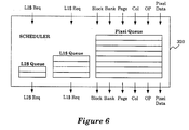 - Figure 6 illustrates the scheduler circuit which places the pixel access parameters in a pixel queue, and which places the L1 cache requests in an L1 cache queue (L1$ Queue), and which places the L2 cache requests in an L2 cache queue (L2$ Queue).