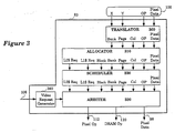 - Figure 3 illustrates the frame buffer memory device controller for one embodiment which comprises a translator circuit, an allocator circuit, a scheduler circuit, an arbiter circuit, and a video request generator.