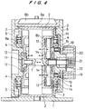 - Side walls 3 of the housing 2 have openings at their centers in which hub members of arms 5 are rotatably mounted through bearings 4.