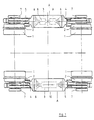 - zeigt schematisch in der Draufsicht den Fahrwerksantrieb für ein Drehgestell an Niederflurfahrzeugen.