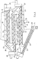 - the air heated in this heat exchanger is brought by means of fans or the like (not shown) via the connecting pieces into heating rooms (27) which are located below the floors (12, 13) of the screw conveyors (21) and which are covered by the perforated walls (22) are.