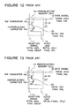 line 12A, the referencelevel generating circuit 108B is controlled to generate the reference level on the pairing data signal line /12A, so that the reference level generated by the referencelevel generating circuit 108B is read out to the data signal line /12A. The other operation is the same as that of the 2T/2C type memory cell, and further explanation will be omitted for simplification of description. - The above mentioned example adopts a system of reading the data by driving all the plate lines 13 from the low level to the high level so as to apply both positive and negative voltages to the opposing electrodes of the ferroelectric capacitor. However, it is possible to read the data by setting an intermediate voltage on the plate lines so as to apply both positive and negative voltages to the opposing electrodes of the ferroelectric capacitor. Referring to Figure 9, there is shown a partial circuit diagram of a memory cell array of a memory adopting such a data reading system. In Figure 9,