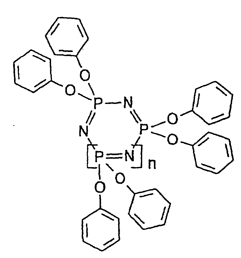 - RNFJDJUURJAICM-UHFFFAOYSA-N 2,2,4,4,6,6-hexaphenoxy-1,3,5-triaza-2$l^{5},4$l^{5},6$l^{5}-triphosphacyclohexa-1,3,5-triene Chemical compound N=1P(OC=2C=CC=CC=2)(OC=2C=CC=CC=2)=NP(OC=2C=CC=CC=2)(OC=2C=CC=CC=2)=NP=1(OC=1C=CC=CC=1)OC1=CC=CC=C1 RNFJDJUURJAICM-UHFFFAOYSA-N 0.000 title claims description 17