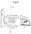 - the tilting driving portion 79 comprises a dc motor 51, a worm gear 80 fastened to an output shaft (not shown) of the dc motor 51, a worm wheel 81 which meshes with the worm gear 80, a worm shaft 82 an end of which is cut D-shaped and is fitted into a center hole 81a of the worm wheel 81 so as to move in its axial direction but not to turn, a worm wheel 83 which meshes with the worm shaft 82, a gear 84 disposed coaxially with the worm wheel 83 so as to turn simultaneously with the worm wheel 83, and an idle gear 85 which meshes with the gear 84.