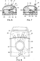 - Figures 6 and 7 are sectioned views taken along line 6-6 of Figure 1, showing in particular the part for engaging the handles of the cooker in two different working positions, i.e. in a position of locking together of the handles and in a position of disengaging of the handles respectively;