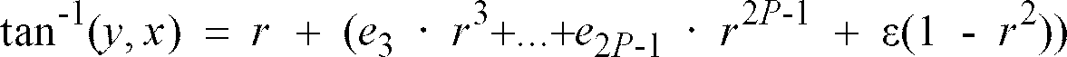 - , which lies in the interval [2 -4 ,1) and the result is computed using the mathematical identity: tan -1 ( s ) sign ( s )( ⁇ 2 - tan -1 ( 1
