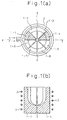 - Figs. 1(a) and 1(b) are explanatory views of the principal portions of a cold crucible apparatus, wherein Fig. 1(a) is an explanatory plan view, and Fig. 1(b) is an explanatory view of the longitudinal section taken along A - A of Fig. 1(a).