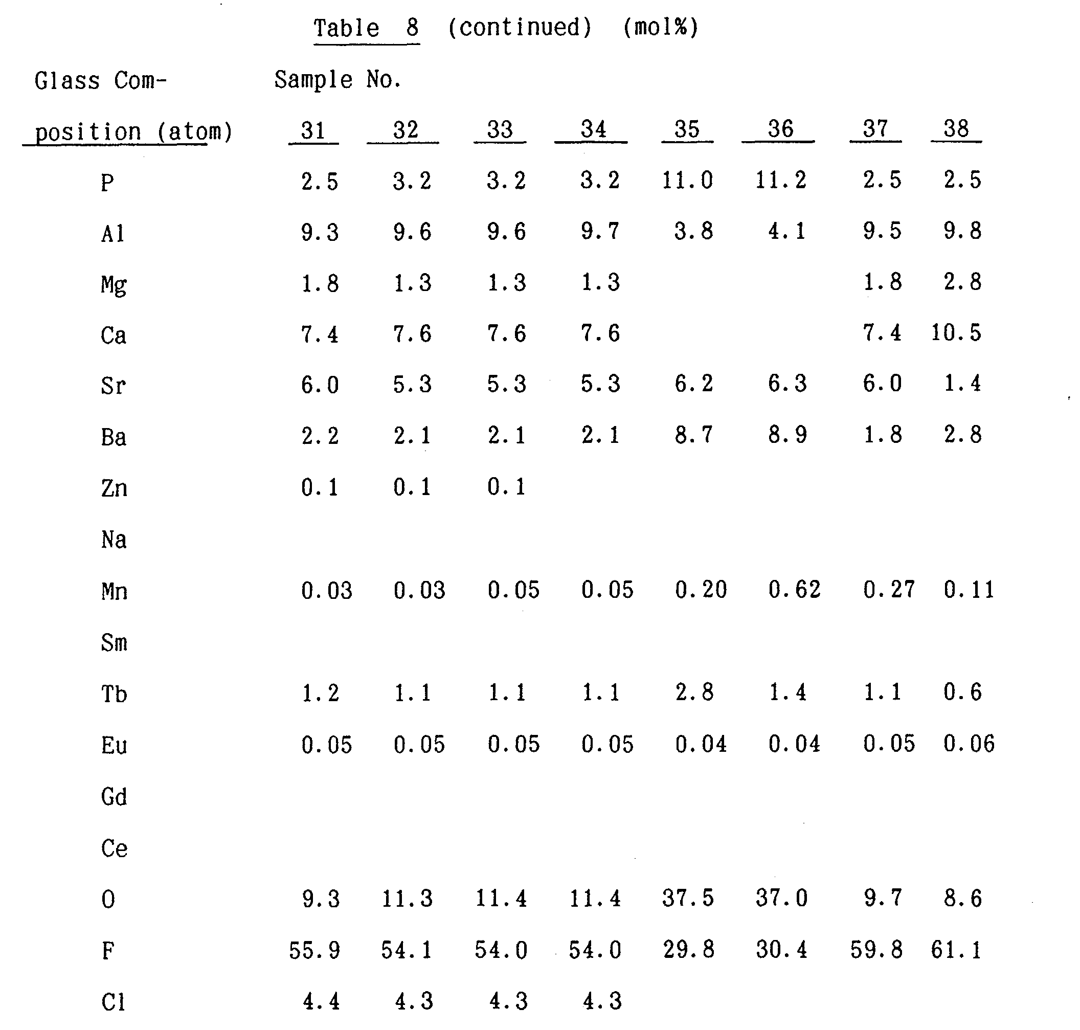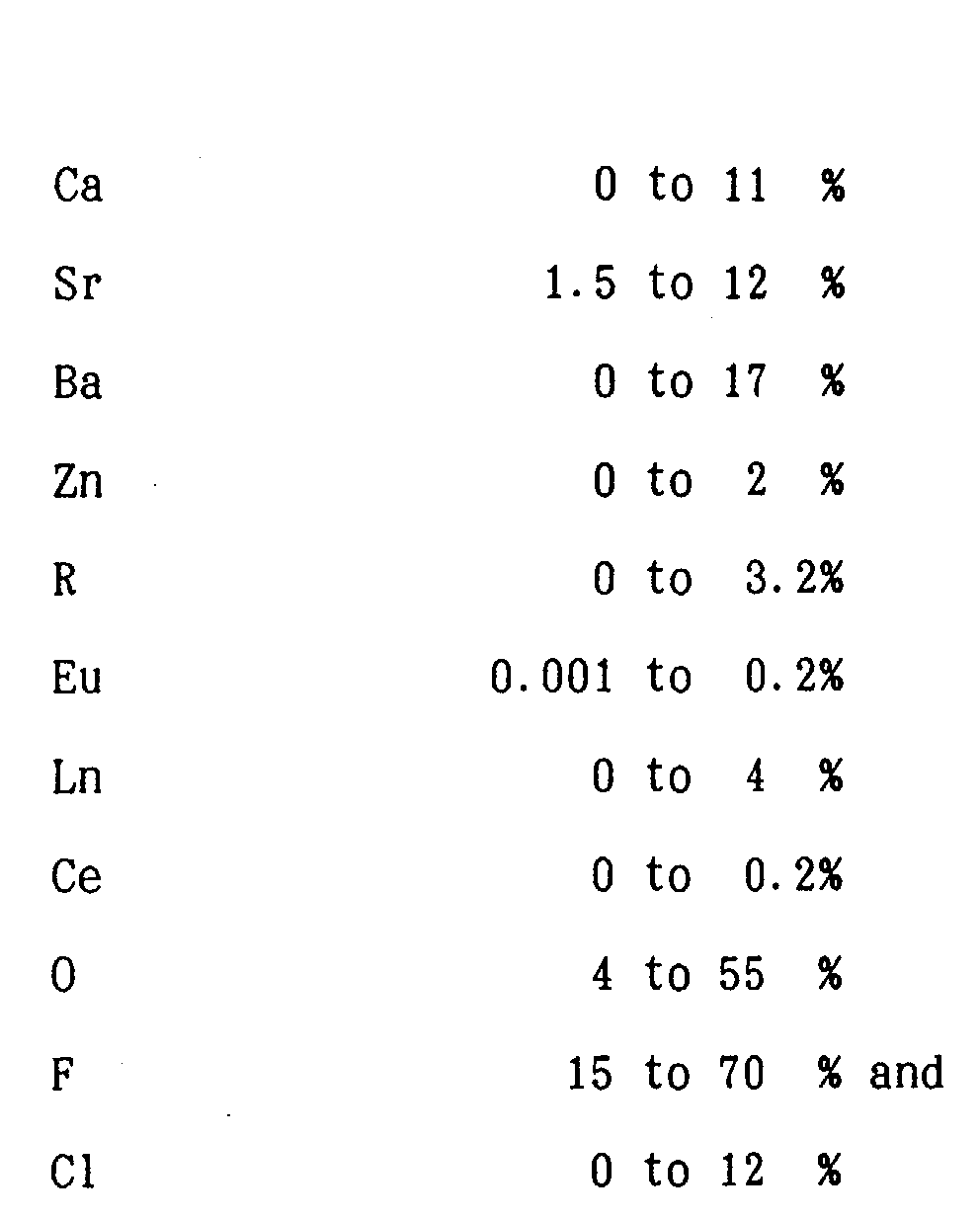 | US5635109A (en) | Tb- or eu-containing fluorophosphate fluorescent glass | |