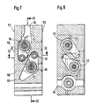 - the solenoid valve 12 has a housing 50 a continuous, multiple offset slide bore 51st on, in the side by side by annular extensions an inlet chamber 52, a first motor chamber 53, a Return chamber 54, an intermediate chamber 55 and a second Motor chamber 56 are formed. These chambers are in correspondingly with the assigned inlet connection 19, (P) the first motor port 24 (A), the return port 22 (R) and the second motor connection 25 (B) in connection.