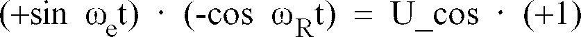 - the demodulation takes place by cyclical switching with demodulation sequences I, II, III and IV and the output signal of the switching stage SCH1 is smoothed after a demodulation via a low-pass filter T1 and supplies the cosine-shaped output signal to further processing devices V1, while the switching stage SCH2 the demodulation for the sinusoidal output signal, which is smoothed via a low-pass filter T2.