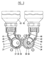 - the metering cylinders 4 & 5 have O-rings 36 & 37 on the outer diameters of the eccentric nose outlets 26 & 27 as the sealing means against the internal bores of the double outlet 2 and O-rings 38 & 39 as the sealing means between the metering cylinders 4 & 5 and the double inlet 3, the latter having two individual inlets 40 & 41.