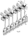 - the terminal strip is designed for a very specific number of slots, so that different terminal strips are required depending on the number of slots. Since the slots in the main board can be inserted with both horizontal and vertical insertion directions, the terminal strip can also be adapted to different housing walls with appropriate guide and holding elements.