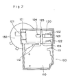- Other pair holes 122, 122 are for penetration of downward parts 221, 221 of stationary strips 220, 220. The penetration serves to hold or fix the strips involved to the bottom wall of second compartment 120 for the strips, in turn to assembly box 100.
