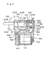 - Excited coil 410 attracts actuator 420 which thereby displaces to the arrow mark A in Fig. 3 with flexed point 421 as center.