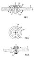 - the nozzle body differs 27 of the previous ones in that the first section on its side facing away from the second section End 29 is slotted like a dowel, so that it is elastically compressible. Further points the outside of the first section an undercut 39 on whose outer diameter in substantially equal to the inside diameter of the Nozzle body receiving bore in the nozzle bottom 2, and its expansion in the axial direction of the nozzle channel is equal to the thickness of the diffuser base plate 2 is. Numeral 28 denotes a by the undercut 39 formed pawl.