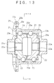- the balls 14 within the elongated holes 13b are guided by the grooves 12b and roll to reciprocate along the associated elongated holes 13b. More specifically, the balls 14 lying on the radially outer side in Fig. 11 are moved toward the radially inner side along the first guide segments 12b-1 of the grooves 12b and after having reached the inner reversing points they are moved toward the radially outer side along the second guide segments 12b-2 of the grooves 12b. In this case, as shown in Fig.