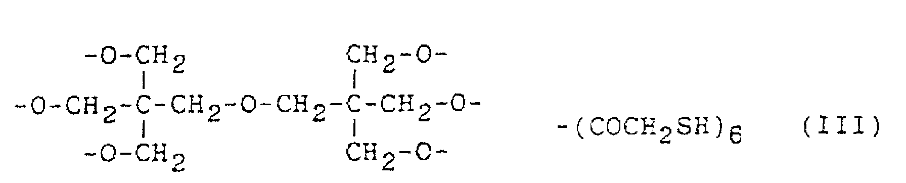 • the compound (S 3 ) which has the general formula (II) includes trimethylolpropane tris-(mercaptoacetate), trimethylolethane tris(mercaptoacetate) and pentaerythritol tetrakis(mercaptoacetate).