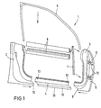 - 1 and 2 denotes a door frame, the essentially consists of a lock bracket 2, a hinge bracket 3, a lower flange profile 4 and a window frame 5 and a window shaft profile 6 is composed. How 1 can be removed, for example, a window guide profile 7 to guide the disc, not shown be provided.