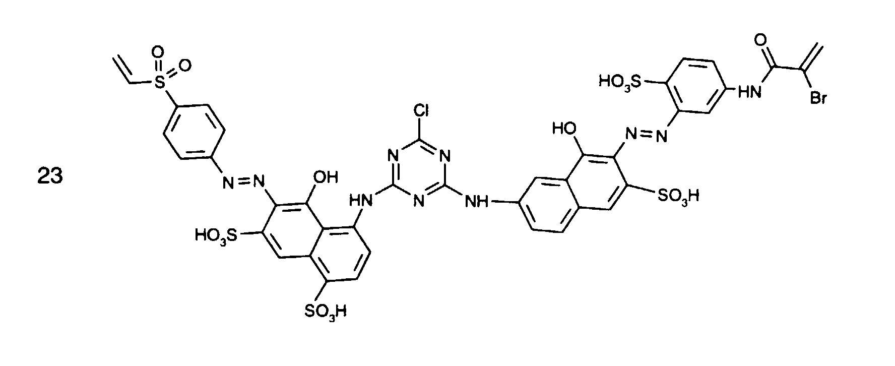 • C09B62/44Reactive dyes, i.e. dyes which form covalent bonds with the substrates or which polymerise with themselves with the reactive group not directly attached to a heterocyclic ring