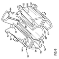 - the hub includes two pair of back-to-back elongated flex-arms each having a radial portion 54, a lateral portion 56, and truncated reverse-radial portion 58.
