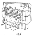 - Fig. 4 shows the procedure for returning unused media back onto the roll 35 by manually reversing 42 the direction of rotation of the roll while the printer cover 36 is raised, the paper bail 38 is up, and the paper release lever 40 is in a "paper release" position.