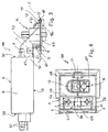 - Anschlussvorrichtung mit Entstörfilter nach einem der vorangehenden Ansprüche, dadurch gekennzeichnet, daß der Hauptkörper seitlich offen ist, und insbesondere an der dem Ausleger gegenüberliegenden Seite (38), so daß ein Zugang zu dem Hohlraum möglich ist; wobei der Hohlraum mit einem festen Isolierharz gefüllt ist, in dem die Komponenten des elektronischen Filters eingebettet sind.