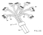 - US 5 272 277 discloses a modular telecommunication cabling arrangement defined by a plurality of elongate main distribution modules which serially couple together, each said main distribution module including an elongate intermediate cable having a connector unit at each end thereof, said cable defining a plurality of multi-conductor telecommunication links extending longitudinally therethrough and terminating at the connector units provided at opposite ends thereof, each said connector unit having a plurality of multi-conductor terminals corresponding to the number of telecommunication links; the connector units as provided on adjacent ends of two said distribution modules being fixedly coupled together to define a series of interconnected main distribution modules so that the terminals on one connector unit respectively engage the individual terminals on the other connector unit, said engaged terminals permitting said plurality of multi-conductor telecommunication links to be transmitted between said interconnected main distribution modules wherein the same telecommunication links are transmitted longitudinally along the telecommunication cabling arrangement.