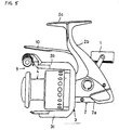 - a first preferred embodiment of the inventive spinning reel as illustrated in Fig. 1 comprises a reel body 2 with a rotating handle 1, a rotor 3 which is rotatably supported at the front of the reel body 2, and a spool 4 located at the front of the aforementioned rotor for reeling up a fishing line.