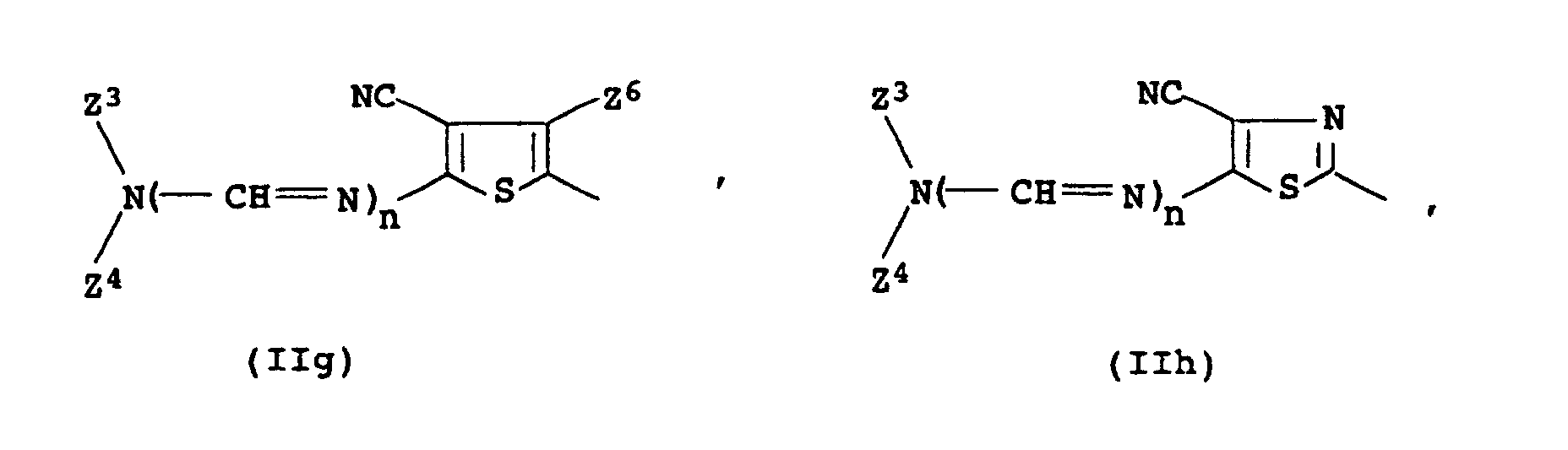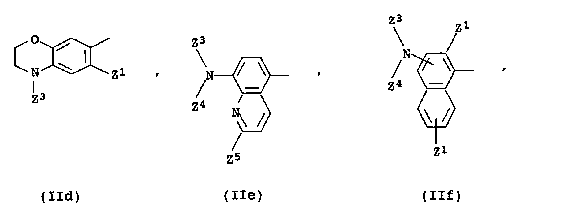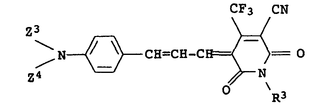 • Preferred radicals R 3 , Z 3 , Z 4 , E 1 and E 2 are furthermore, for example, benzyl, 2-methylbenzyl, 1- or 2-phenylethyl, 2-hydroxyethyl, 2- or 3-hydroxypropyl, 2-cyanoethyl, 2- or 3-cyanopropyl, 2-acetyloxyethyl, 2- or 3-acetyloxypropyl, 2-isobutyryloxyethyl, 2- or 3-isobutyryloxypropyl, 2-methoxycarbonylethyl, 2- or 3-methoxycarbonylpropyl, 2-ethoxycarbonylethyl, 2- or 3-ethoxycarbonylpropyl, 2- Methoxycarbonyloxyethyl, 2- or 3-methoxycarbonyloxypropyl, 2-ethoxycarbonyloxyethyl, 2- or 3-ethoxycarbonyloxypropyl, 2-butoxycarbonyloxyethyl, 2- or 3-butoxycarbonyloxypropy