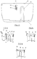 - the open front of the cabinet 4 is flanged as a portal frame having two portal members 10 and 11, these portal members decreasing in depth from the corners 12 and 13 to the extremities 14 and 15 and decreasing along the bottom face to a central joint 16.