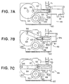 - each of the walls 60a is provided with a guide groove 63 extending left and right in Figures 7A to 7C and pins 62 projecting from the respective side surfaces of the pusher member 61 in perpendicular to the walls 60a are loosely fitted in the guide grooves 63.