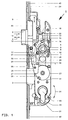 - the follower 5 is activated by pressing Pusher not shown in the direction of arrow 40 around geometric axis 41 rotated. This causes a twist the control nut 17 in the same direction, i.e. in Clockwise direction, which over the end 18 which on the trap tail 20, the trap 2 in the direction of Arrow 14 is withdrawn.