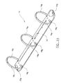 - the bent portion 38 of the wire 24 may be acutely angled to the longitudinal axis of the ring binder 10. The effectiveness of this action can be still further enhanced by arranging a side of the aperture 34 to be angled to the longitudinal axis of the ring binder 10.