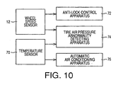 - the estimating means includes: provisional value calculating means for calculating a provisional value of the air pressure of the tire, on the basis of the motion of the tired wheel detected by the wheel motion sensor, such that the provisional value represents an actual value of the air pressure when the temperature-related variable detected by the temperature-related variable sensor is equal to a reference value; and provisional value compensating means for compensating the provisional value calculated by the provisional value calculating means, on the basis of the temperature-related variable and according to a predetermined relationship between the temperature-related variable and a final value of the air pressure which is the provisional value compensated by the provisional value compensating means.