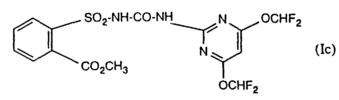 - Compounds of formula (II) include, but are not limited to, metsulfuron-methyl and sulfometuron-methyl.