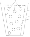 - the drawing figure shows the front view of a conical, hollow body 1 open at the top, on the side wall 2 a A large number of approximately circular openings are present.