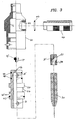 - Referring first to Fig. 9 for understanding of the prior art, a typical prior art nozzle assembly comprises a nozzle body containing a number of interconnected central bores into which the various components of the nozzle were assembled. For example, a nozzle tube 2, an orifice 3, a