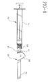 - the distal end of the syringe barrel also includes a locking luer-type collar 79 concentrically surrounding the tip.