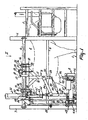 - the carrier frame 9 includes a beam 10 extending substantially parallel to the first frame portion 4, a beam 11 directed vertically downwardly perpendicular to the beam 10 and fixed thereto, and two struts 12. Near the ends of the beam 10, there are provided pairs of supporting elements 13. To each pair of supporting elements 13, by means of supporting plates 14 fixed thereto, at an angle of approximately 45° there are provided two rollers 16, constituting a roller pair 15, the arrangement being such that the carrier frame 9 is suspended easily movably along the upper frame portion 4, therebelow. On the beam 10 of the carrier frame 9, on both sides, there are provided two carriers 17, to which there is movably attached a motor 19 about a pivot shaft 18.