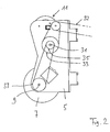 - FIG. 3 there is one on the inside of the device Pair of bearing rollers 17 and yet another in contrast further out but still arranged in the area of the housing 5 leading bearing roller 17 'shown.
