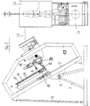 - the horizontal conveyor 7 comprises a rectangular frame 8, which is below a stand-up conveyor 9, which consists of endless conveyor belts 10 and 11th and there is a horizontal row of rollers 12 arranged between them, which are driven synchronously.