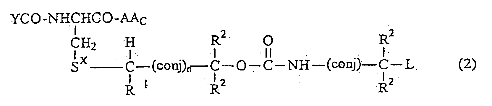 - the compounds of the invention are comprised of a tripeptide which is glutathione or an analog thereof coupled to a leaving group through a molecular system which permits release of the leaving group L when the compounds of Formula 2 are treated with the appropriate GST. CO 2 will also be released.