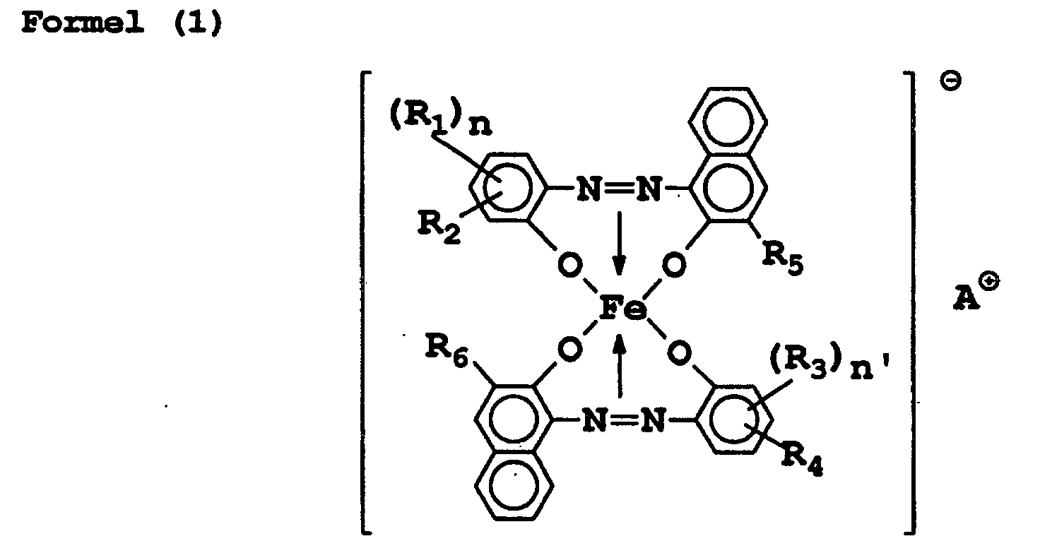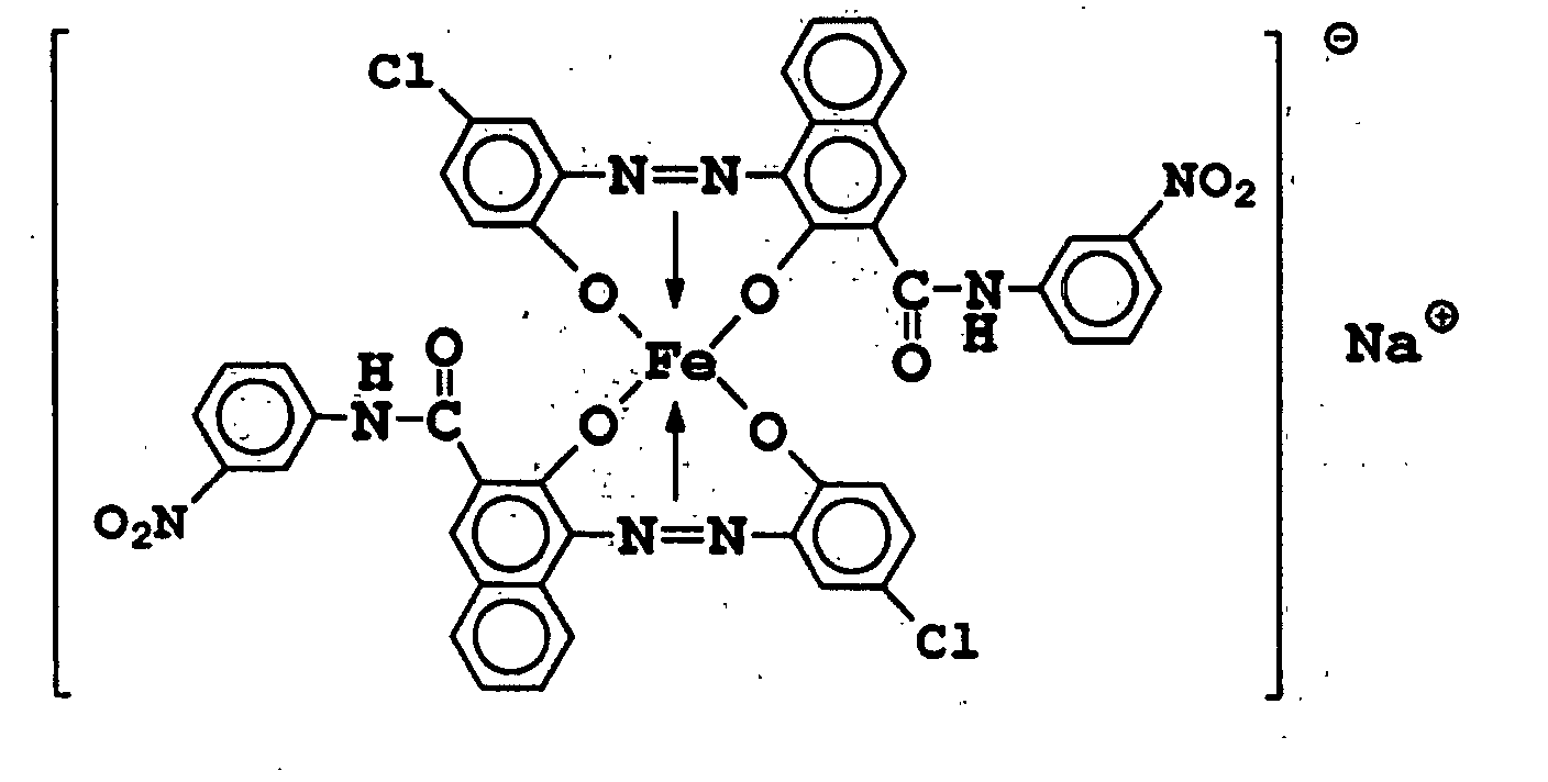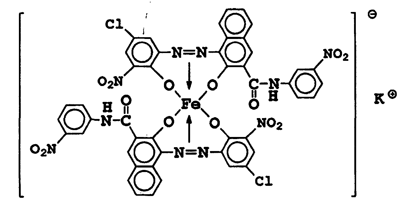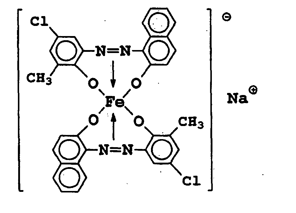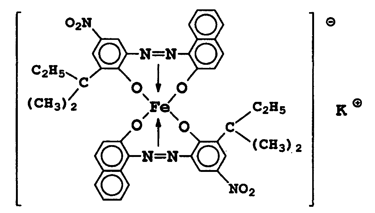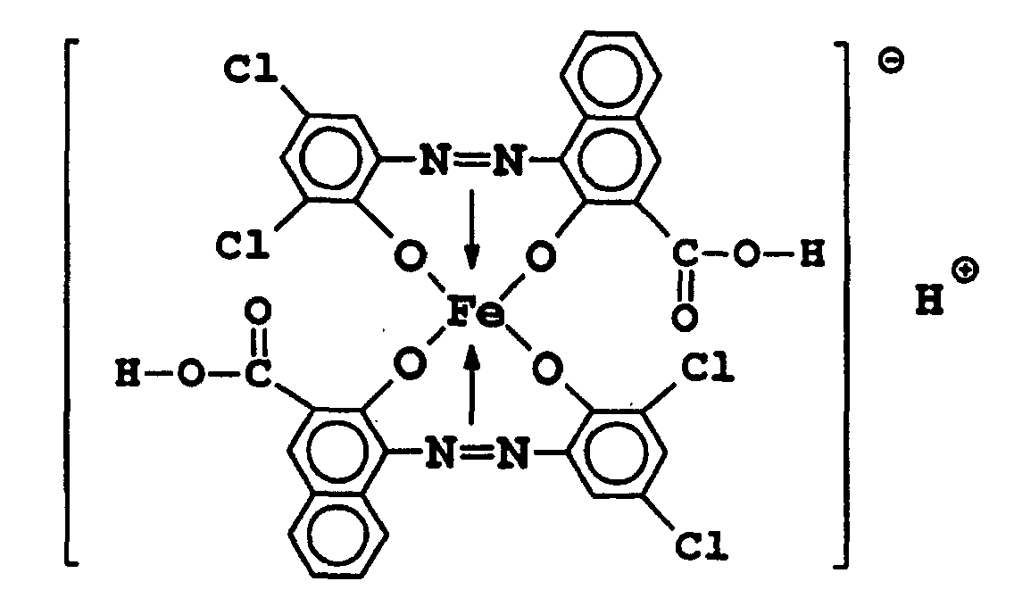 - the azo type iron compound used in the present invention has a complex structure represented by the following Formula (1).