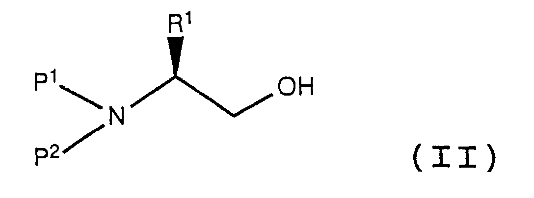 - Reetz et al U.S. Patent No. 4,990,669 discloses the formation of optically active alpha amino aldehydes through the reduction of alpha amino carboxylic acids or their esters with lithium aluminum hydride followed by oxidation of the resulting protected beta amino alcohol by dimethyl sulfoxide/oxalyl chloride or chromium trioxide/pyridine.