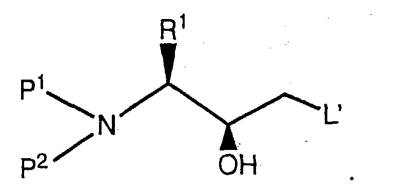 - Reetz et al (Tet. Lett., 30 , 5425 (1989) disclosed the use of sulfonium and arsonium ylides and their reactions of protected ⁇ -amino aldehydes to form aminoalkyl epoxides.
