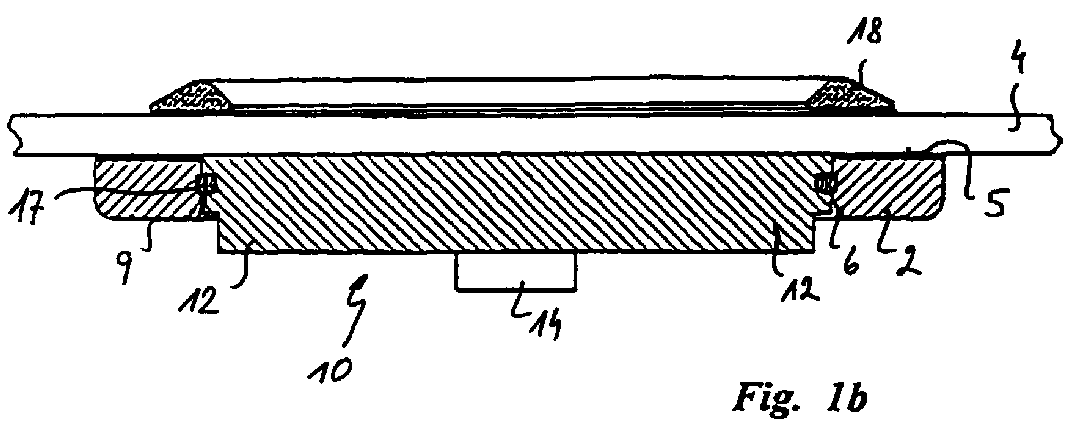 - FIGS. 1 to 1b is used as a mounting flange 2 ring for attachment the entire arrangement on a glass pane 4.